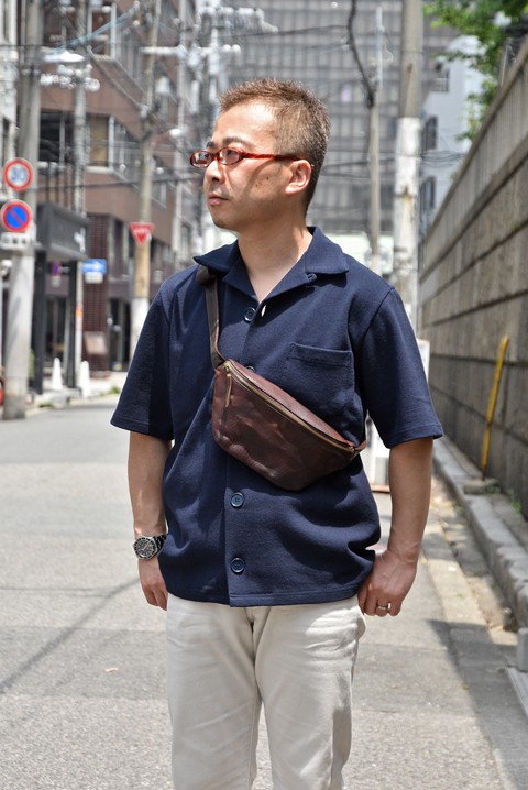 「暑い夏には、こんなリラックス感のあるオープンカラーシャツもおすすめです。がっしりとした生地感は、洗い込む程に表情豊かになっていきますよ。」