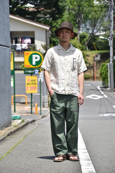 ダンディーに色落ちしたブルーデニムとの組み合わせも良さそうですよね! しかし、自分に合うのは穿きこなれたワークパンツ。真夏には素肌の上からの着用もオススメです。