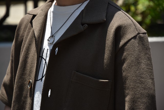 ポロシャツでよく目にする鹿の子素材。ですが、生地は米綿でドライタッチ。ガシっとしたヘビーオンスTシャツのような肌当たりなので、着込んだあとの表情も楽しみな一枚です。