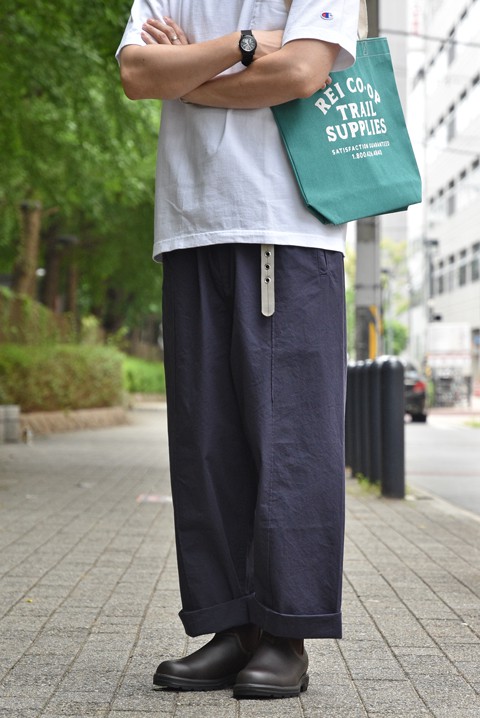 ナウンのワイドパンツにサイズアップのポケT。ちょっぴりワークテイストなコーディネートが宜しいかと思います。