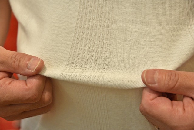 伸縮性に優れたフライス編みのコットン100%でとても肌触り良く、身体に吸い付くようなフィット感です。嫌な締付けもなく、快適でインナーウェアとして最適です。
