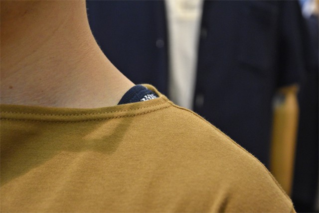 先にご紹介の針抜きフライスモデルに比べ、こちらのベーシックワッフルは身幅にやや余裕があるのでゆるいフィット感です。こちらはワッフル地を使用し、コットン50%ポリエステル50%の素材ですので肌触りは“サラッと”ドライな印象です。