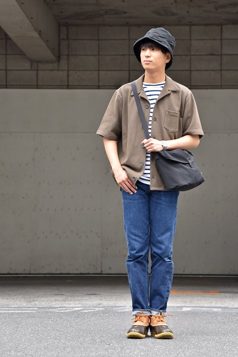 「落ち着いた色味のシャツの下にボーダーのカットソーと合わせたカジュアルコーディネート♪良い感じに色が落ちてきたリゾルトの足元はガムシューズで決まりですね。」