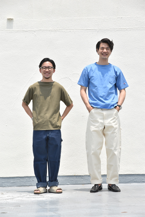 坂口氏はデニムを着用、私はナチュラルを着用しています。