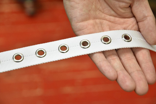 ここで綺麗な色とハトメがファッションとしていいアクセントになるんです。