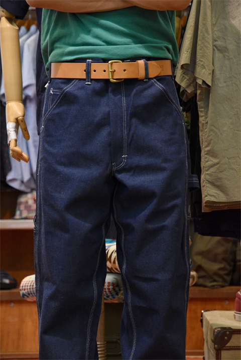 幅が、3.8cmの少し太めのタイプ。 主に、ジーンズやワークパンツに相性の良い太さです。 ZABOU定番のワークパンツStan Ray(スタンレイ) ペインターパンツ ネイビーデニムに合わせてみました。 パンツのボリュームに見合ったベルトの太さでバランスが良いです。 ちなみに、スラックス等、ベルトループが細いパンツには通らない事があるので注意が必要です。 TANNER GOODS(タナーグッズ)STANDARD NATURAL(GOLD) ロールバックル  ¥16,200- バーンストーマーのチノパンに合わせてみると、、 ベルトループには難なく通りますが、パンツが細身なのでややベルトが太く感じますね。