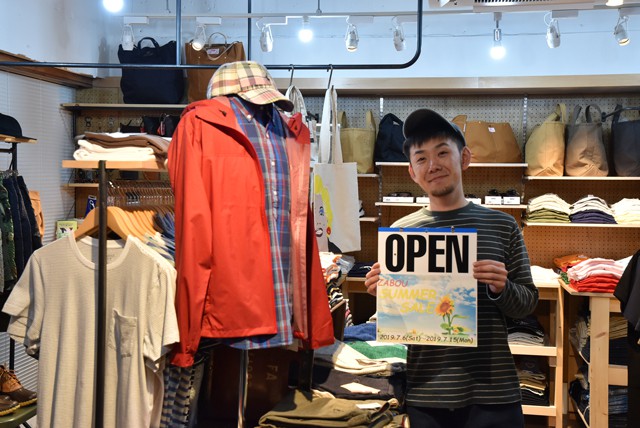 好評開催中の「ZABOU SUMMER SALE2019! 皆さま存分にお楽しみいただけてますでしょうか? いよいよ明日が最終日となります。まだまだお得でエエもんたくさん揃っていますので、是非ともこの機会にお買い物をお楽しみくださいませー! Candidium(カンディディウム) 3B テーラードジャケット 定価¥38,880-の30%OFF⇒¥27,216- ●ARBLE(アルブル)マドラスチェック プルオーバーシャツ  定価¥19,440-の30%OFF⇒¥13,608- SPINNER BAIT(スピナーベイト)Vネックカーディガン 定価¥12,960-の30%OFF⇒¥9,072-Candidium(カンディディウム) ニットカーディガン 定価¥14,040-の30%OFF⇒¥9,828- SPINNER BAIT(スピナーベイト)ボーダークルーネックTシャツ 七分袖 定価¥7,344-の30%OFF⇒¥5,140-SPINNER BAIT(スピナーベイト)ボーダークルーネックTシャツ半袖 定価¥6,480-の30%OFF⇒¥4,536- GIBBS SMITH(ギブススミス) トートバッグ 定価¥4,752-の30%OFF⇒¥3,326-La Casa Cotzal(ラカーサコッツァル)トートバッグ 定価¥7,344-の30%OFF⇒¥5,140- 皆さまのご来店をお待ちしております。 ⇒「ZABOU SUMMER SALE2019!」本日より開催です!ZABOU style 2019 ~SUMMER SALE おすすめアイテム!~SUMMER SALE おすすめアイテム!-坂口編ー「ZABOU SUMMER SALE2019!」 セールおすすめ商品。(城所編) 【ZABOU SUMMER SALE!! 2018】 期間:2019年7月6日(土)~7月15日(月) 時間:12時~20時 場所:ZABOU OSAKA、ZABOU TOKYO、ZABOU WEB SHOP 大阪店インスタアカウント@ZABOUOSAKA13 東京店インスタアカウント@ZABOUTOKYO ☆通販で購入、商品詳細など詳しく見る! ⇒ZABOU WEB SHOP(ウェブショップ) 通販サイト ☆実店舗へのご案内、お店までへの行き方を地図や動画でご紹介! ⇒ZABOUのお店