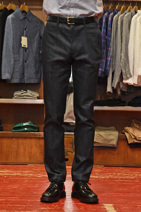 綿100よりさらりとした肌当たりになるポリエステル入りのトラウザーは夏のよき味方。オフシーンでも楽しめるので一本あればとっても使えます。