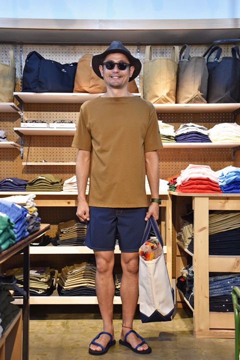 ●Tシャツ Saint James(セントジェームス)  サイズ:T5  ¥7,344- ●ショートパンツ BIRDWELL(バードウェル)  サイズ:30  ¥14,040- ●サンダル mont-bell(モンベル)  サイズ:M  ¥3,024- ●帽子 SUBLiME(サブライム)  ¥5,184- ●サングラス IZIPIZI(イジピジ)  ¥5,940- ●時計 BERTUCCI(ベルトゥッチ)  ¥10,584- ●アンクレット NORTH WORKS(ノースワークス)  ¥7,344- ●バッグ L.L.Bean(エル・エル・ビーン)オリジナル Boat&Tote(ボートアンドトート)  ¥8,532- ●バスタオル PENDLETON(ペンドルトン)  ¥9,504- モデル 身長176㎝ 体重68㎏ 足のサイズ25.5㎝ ●アイテム その1 日除けのサングラスとハット 日差しの強い夏こそサングラスと帽子を。帽子はくるくると丸めてコンパクトに持ち運び出来る優れものです。 ●アイテム その2 サーフトランクス ついに復活!バードウェルのサーフトランクスが入荷してまいりました。ビーチウェアとしてはもちろん、街着としても是非。本日ウェブにもアップしましたのでご覧ください。 ※バードウェルはZABOU TOKYO、ZABOU WEB SHOPのみのお取り扱いとなります。 ●アイテム その3 イージーサンダル 脱ぎ穿きが楽チンなモンベルのサンダルは、濡れてもへっちゃらなので海に穿いていくにもいい。シンプルながらアウトドアブランドらしい気の利いた作りはさすが。 ●アイテム その4 でかトートにでかタオル。 ざくざく荷物を入れらるようにエルエルビーンのトートバッグ。タフな素材なので気にせず使える所もいいですね。中にはペンドルトンのバスタオルを突っ込んでより気分を盛り上げてくださいませ。