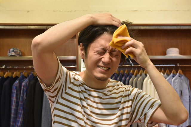 ●サングラス IZIPIZI(イジピジ)  ¥5,940- ●Tシャツ Saint James(セントジェームス)  サイズ:T5  ¥7,344- ●ショートパンツ MOCEAN(モーシャン)  サイズ:M  ¥14,904- ●サンダル BIRKENSTOCK(ビルケンシュトック)  サイズ:41  ¥14,040- ●バッグ REI(アールイーアイ)  ¥2,484- ●タオル mont-bell(モンベル)  モデル 身長175cm 体重65kg 足のサイズ約26.5cm ●アイテム その1 丸型のサングラス Tシャツにショートパンツとシンプルになる夏は小物でインパクトを持たせてみては。 アイテム その2 ナイロンショーツ ただ暑いだけではなく、湿気が多く入り混じる日本の夏。ショートパンツはナイロンの快適なものが過ごしやすい。モーシャンのそれは、一般的なナイロンものより作り込み、雰囲気共に◎ ●アイテム その3 サンダル サンダルの定番ビルケンも、この時期は一番露出が多いアリゾナがグッド。世代、スタイル問わず履けるまさに定番アイテム。 ●アイテム その4 高機能タオル(ハンカチ) 吸水力が高く、速乾性に優れたモンベルの高機能タオルを暑い夏のお供に是非おすすめしたい。バッグに一つ忍ばせておきましょう。こちらサイズがいろいろとございます。詳しくは後日ザボブロにて。