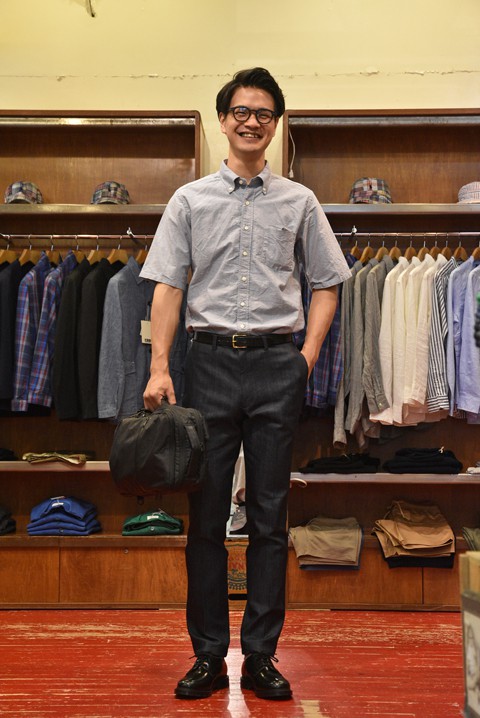 ●半袖シャツ SPINNER BAIT(スピナーベイト)   サイズ:XL  ¥9,720- ●パンツ BARNSTORMER(バーンストーマー)   サイズ:L  ¥18,144- ●シューズ SOLOVAIR(ソロヴェアー) サイズ:10  ¥36,720- ●バッグ SML(エスエムエル)  ¥15,120- ●ベルト JABEZ CLIFF(ジャベツ・クリフ)  サイズ:32  ¥13,824- ●メガネ IZIPIZI(イジピジ)  ¥5,076- ●セットアップ THOUSAND MILE(サウザンドマイル)    サイズ:XL  ¥8,964- モデル 身長185cm 体重72kg 足のサイズ約29cm ●アイテム その1 半袖シャツ クールビズOKなら半袖がやっぱり涼しい。場所を選んで長袖と使い分けたいですね。 ●アイテム その2 ポリエステル混のトラウザー 綿100よりさらりとした肌当たりになるポリエステル入りのトラウザーは夏のよき味方。オフシーンでも楽しめるので一本あればとっても使えます。 ●アイテム その3 多機能バッグ 手持ちとリュックを使い分けられる便利なビジネスバッグ。収納、小分けも充実しています。 さらに、実はサコッシュが内蔵されていますので、メインの荷物は部屋に置いてこれで軽くお出掛け、なんてことも可能。一度で二度おいしいバッグなのです。 ●アイテム その4 セットアップ サウザンドマイルのセットアップ。ホテル備え付けも良いですが、こちらを部屋着にするのもアリです。これならさっとコンビニに行くにもいい。 ストレッチによる着心地の良さ、かなりの速乾なので洗って部屋干しなんてことも出来ちゃいます。持ち運びは付属のサコッシュに小さく畳んでカバンにポイっと。 ・ ・ ・ いかがでしたか。 “コト”に合わせて“モノ”を選ぶ。 その時々に合わせて夏とファッションをお楽しみください。 それでは明日もご来店お待ちしております。