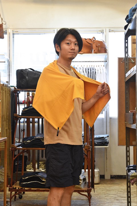 毎朝店の掃除をしますから、通勤と合わせてもう汗だく。自転車の時に風でパタパタしないように私はマフラータイプにしてみました。