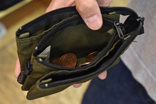 BAG'n'NOUN(バッグンナウン) TRIO 'S' II  ¥4,752- こちらがSサイズ。ポーチですね。 特徴は3つに分かれた内部の作り。小分けが出来て便利なんです。 普段、同じくバッグンナウンの「SHELL RUCK L」というまあまあ大きいバッグを使っていて、目薬やらリップやら充電器やらのこまごましたものを雑に入れてるもんですから、探すのが結構面倒なんですよ。 そこでこういったポーチにまとめておくと便利なんです。私のように、バッグの中ぐちゃぐちゃやわという方は是非。 小さくみえて結構たくさん入ります。 たばこくらいの大きさも難なく。 真ん中の部屋はジッパー付きなので小銭を入れてお財布にするのもおすすめですよ。 続きまして。
