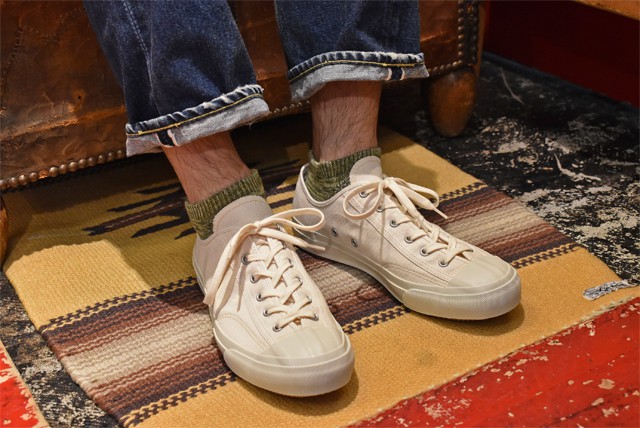 MOONSTAR(ムーンスター) GYM CLASSICやCONVERSE(コンバース)キャンバスオールスター OXなどのローテクスニーカーのLOWカットでしたらサイドと踵部分、靴下がやや見えます。