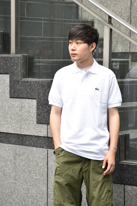 「LACOSTE(ラコステ)のホワイトが再入荷しました。ホワイトはシンプルゆえ着まわしは抜群です。最初の一枚にはホワイトがオススメですよ。」
