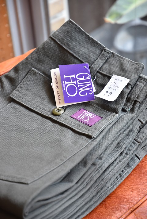 「頑丈なダック素材は穿き込む程に柔らかくなり、風合いも増していき経年変化もお楽しみいただける、GUNG HO(ガンホー)スリムフィットファティーグパンツ オリーブダックが入荷しました。」