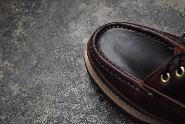 シングルヴァンプと呼ばれるモカシン製法。そのシングルヴァンプの外側にモルデッドソールというレザーをもう一枚重ね合わせていますので、防水性も高まります。