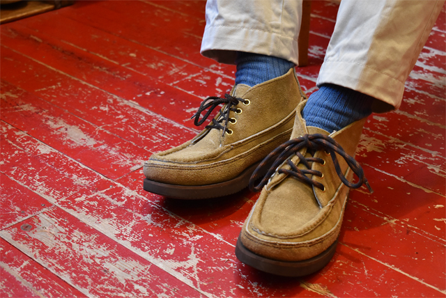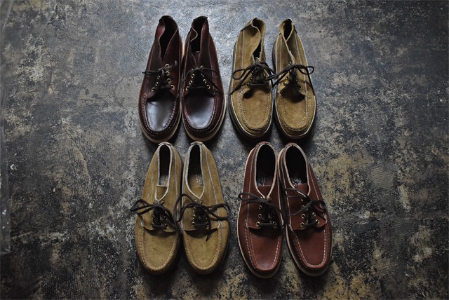 後述のsporting clays chukkaをぶった切った様なこちら、ローカットになります。 一口にローカットといっても好みが分かれるかと思います。 今回は「portage oil tan(ポーテージオイルタン)」 もう一つ「tan laramie suede( タンララミースウェード)」と、同じモデルでもアッパーのレザーとソールとそれぞれに違いがあります。 ・fishing oxford-portage oil tan