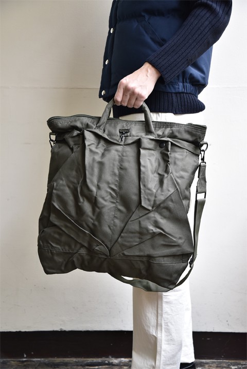 ヘルメットバッグは元々、支給された米軍の重たいヘルメットや酸素マスクなどを持ち運ぶために作られたミリタリー由来のバッグ。なので耐久性、収納力は抜群です。僕もヘルメットバッグは出勤時にはもちろんお出掛けや、旅行などでもガンガン使っています。