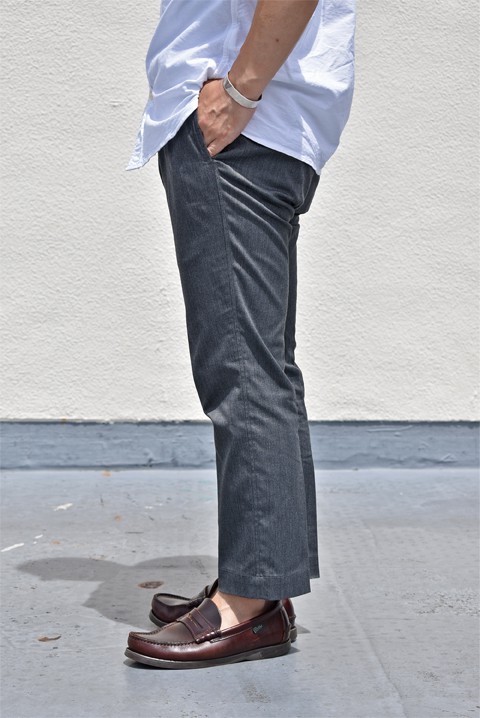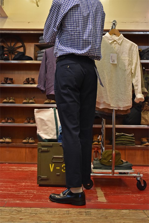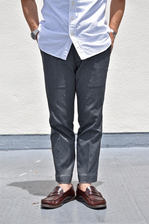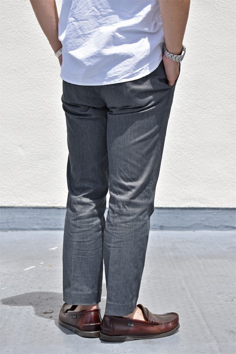 全てのモデル、縫製等はドレスパンツを得意とする国内の工場で生産され仕立てのいい細かな手作業が随所にみられる丁寧な造りとなっております。