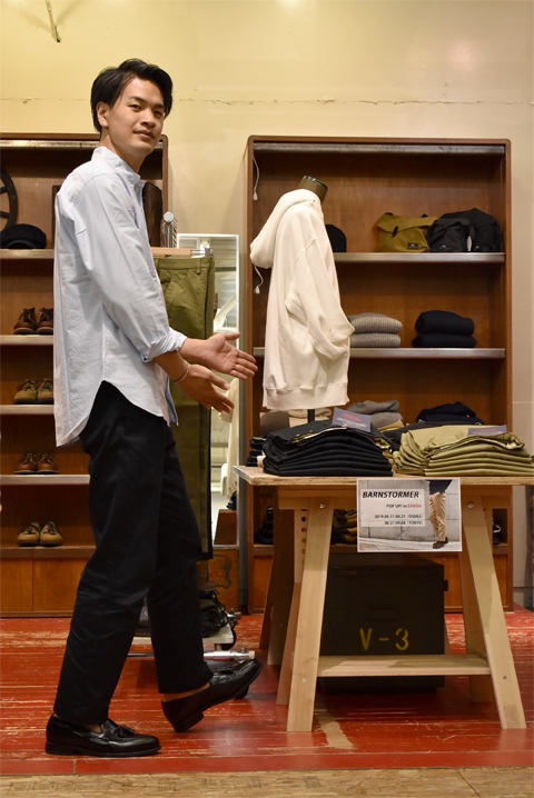 やっぱりバーンストーマーのパンツはトラッドなアイテムで合わせたいですね~。