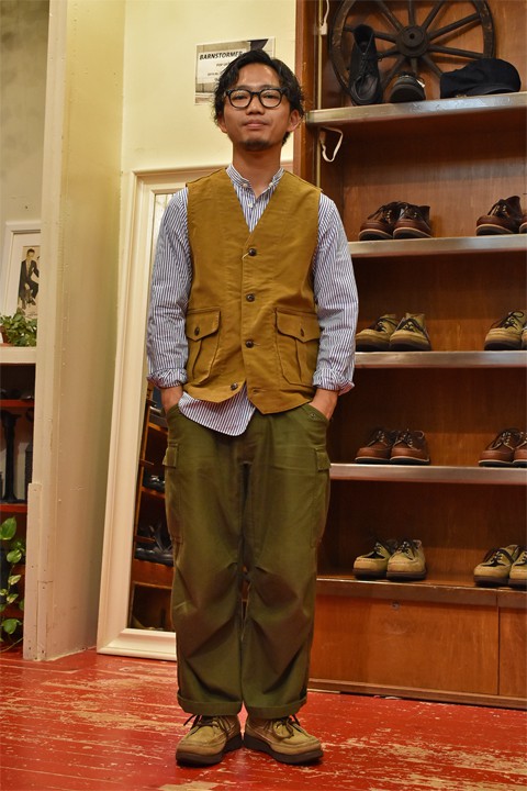 最後に入荷してきたアイテム縛りでコーディネートを組んでみました。