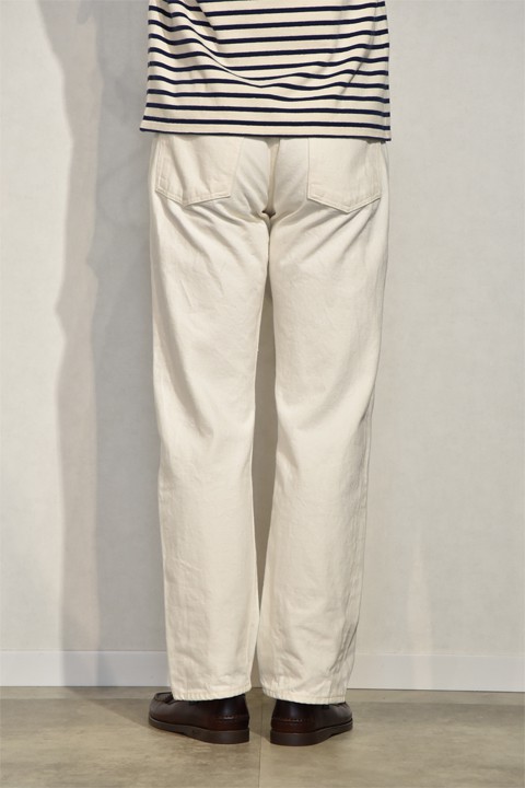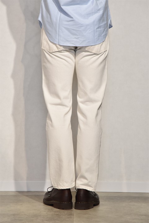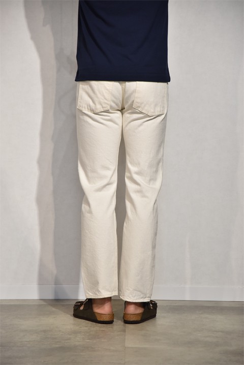 AA711同様ホワイトでは初登場のAA712。710に比べ股上が少し浅く、膝から裾にかけてテーパードがかかったシルエット。フロントはリゾルト唯一のジッパーフライです。わたりに余裕が出ますので、スポーツ体系の方にもおすすめな一本ですね。