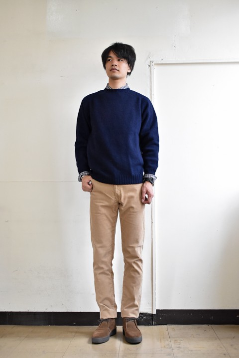 ●ニット Harley of Scotland (ハーレーオブスコットランド)  サイズ:44  ¥14,904‐ ●シャツ SERO(セロ)  サイズ:15H  ¥11,880‐ ●パンツ F.O.B FACTORY(エフオービー ファクトリー)  サイズ:31  ¥15,120‐ ●シューズ SANDERS(サンダース)  サイズ:10  ¥46,440‐ モデル 身長185cm 体重72kg 足のサイズ約29cm