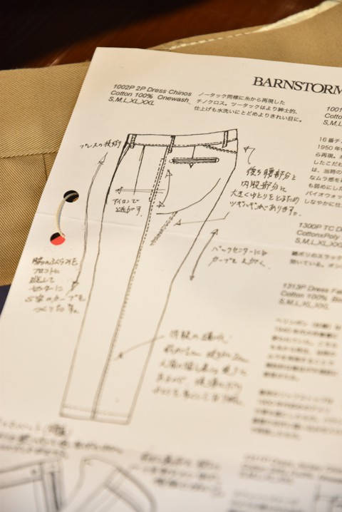 こだわりポイントや特徴が書いてあって、「ほぉー、なるほど。こういう風になってんだな。」と手持ちのパンツを見てみてBARNSTORMER(バーンストーマー)の魅力を再認識。