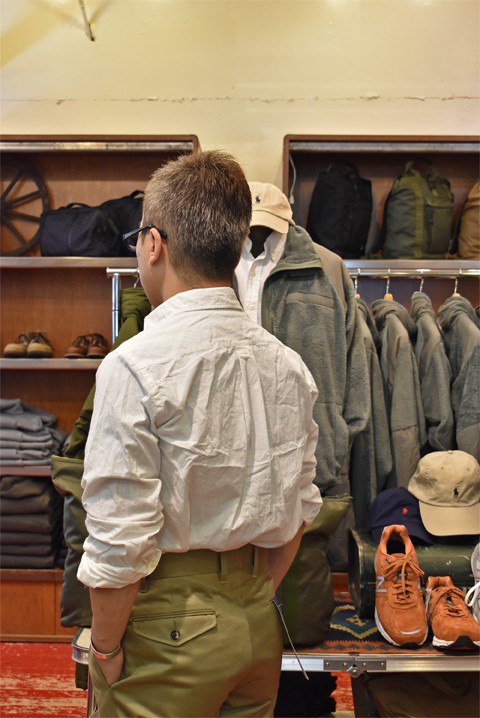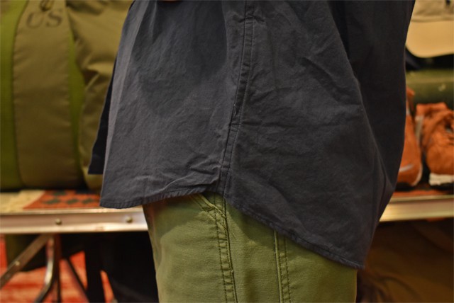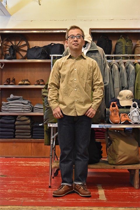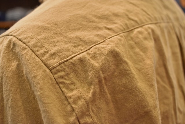 肌触りの良いややハリのある生地感、強度のある素材なので着込んでいき徐々に柔らかくなるとしなやかさが増してさらに着やすくなってきます。