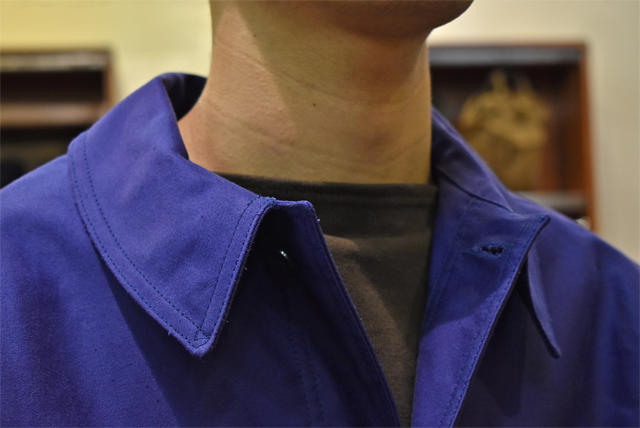 ワークウェアらしいラウンドカラー。