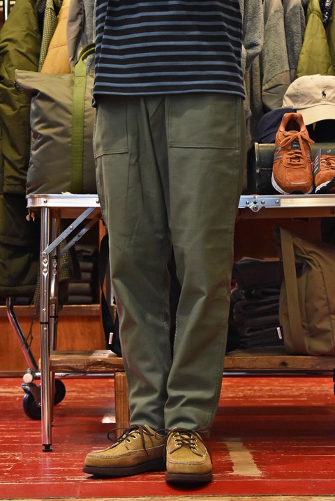 ザボウ定番のガンホー、ファティーグ(軍物の作業着)パンツは一本は持っておきたい定番アイテム。 軍パンと言うと太いものが多い中、こちらはスリムフィットですのですっきり穿けるのがポイント。この度再入荷してまいりましたので是非お試しくださいませ。