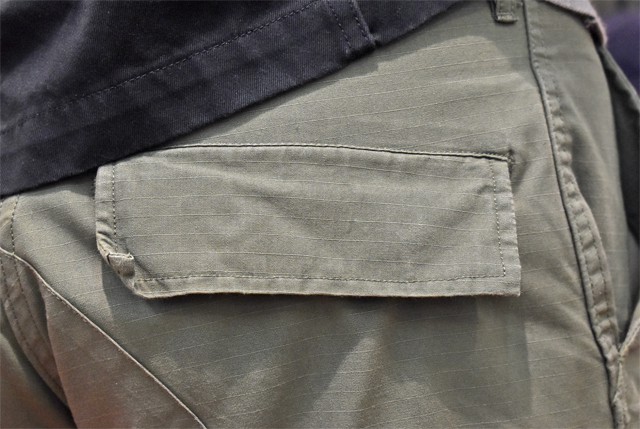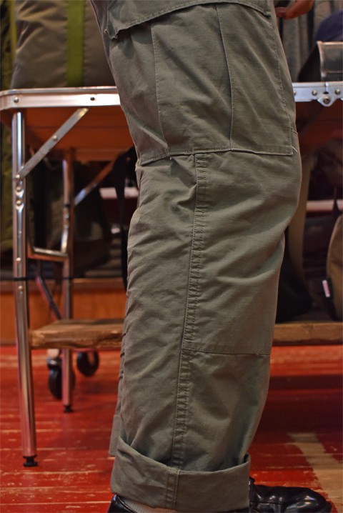コットン100%のリップストップ地のこのパンツは、ジャングルでの戦闘を考えた造り。