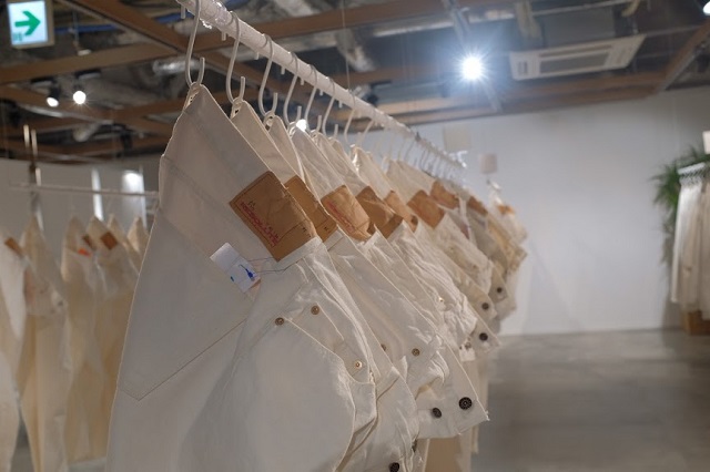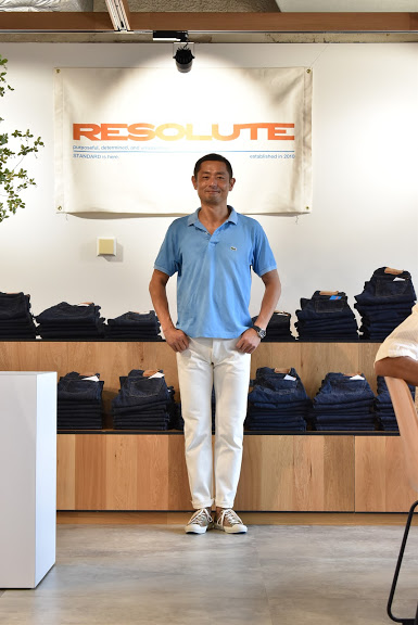 以前5周年の時はRESOLUTE710のみのホワイトデニムを限定生産されたのですが、今回は710に加え711、712までご用意させていただいてございます。よりたくさんの着用写真があったほうが分かりやすいかとRESOLUTEの展示会とお披露目パーティーにスタッフ全員で参加させていただきました。