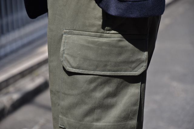 こんばんは、東京店の岡安です。 10月になりましたがまだまだ暑い日が続いていますね。早く沢山着込める時期が来て欲しいものです。しかし店内は暑さに負けず秋冬商品盛りだくさんで皆様のご来店をお待ちしております。 さて本日紹介させていただく商品はZABOUでは初めての入荷になりますフランス軍のM64パーカーM64パンツです。僕自身軍モノがとても好きで特にフランス軍などのヨーロッパ系のアイテムに最近はハマっています。アメリカ軍の物に比べてヨーロッパの物はスッキリとしていて普段のスタイルに取り入れやすいのが魅力です。こちらのフランス軍のM64は実はアメリカ軍の名作とされているM51をベースに作ったとされています。●コート フランス軍  サイズ:92  ¥14,080 ●カットソー SPINNER BAIT(スピナーベイト)  サイズ:40(S)  ¥8,250 ●パンツ BARNSTORMER(バーンストーマー)  サイズ:XS  ¥17,380 ●シューズ G.H.BASS(ジーエイチ・バス)  サイズ:US7  ¥17,600 モデル:身長167㎝ 体重53㎏ 足のサイズ26㎝ ディティールを簡単にご紹介。生地は高密度に織り込まれたコットン地でとても滑らかで触り心地が良いです。着込むことでコットンならではの経年変化も楽しめます。またアメリカ軍のM51と比べ袖がセットインではなくラグランスリーブになっているため、肩周りの動かしやすさもあり肩のラインをキレイに見せてくれます。 個人的には横からのシルエットが気に入っていて僕ぐらいの身長の方が着てもオーバーサイズのコートとして活躍してくれんじゃないかと思います。今回はライナーなしでの入荷なりますが軍のライナーよりもモンベルのインナーダウンなどの方が機能性が高く他のコートやジャケットの中に着込める汎用性があるのでこだわりが特になければそちらをオススメします。 続いてM64パンツのご紹介。レングスもそこまで長くなくこれからの時期はチャッカブーツなどと合わせるのがオススメです。 ●ジャケット H by FIGER(エイチバイフィガー)  サイズ:S  ¥43,780 ●シャツ H by FIGER(エイチバイフィガー)  サイズ:S  ¥10,780 ●パンツ フランス軍  サイズ:76  ¥9,680 ●シューズ SANDERS(サンダース) サイズ:UK6  ¥47,300 モデル:身長170cm 体重60kg 靴のサイズ25.5cm こちらも簡単にディティールのご紹介。生地は先ほどのコートと同じ高密度に織り込まれたコットン素材。横には大き目のフラップポケットがあり、財布やスマホが丁度収まるサイズ感。 横から見るとこんな感じです。 どちらも普段、軍モノを着ない方でも着やすいデザインかと思います。極小量の入荷になりますので是非1度お試し下さい。 SANDERS(サンダース)トランクショー&シューケア実演販売』 【ZABOU OSAKA】 期間:9月21日(土)~9月29日(日) ※シューケア実演販売:9月28日(土) ※終了いたしました。 【ZABOU TOKYO】 期間:10月5日(土)~10月14日(月) ※シューケア実演販売:10月12日(土) 【ZABOU WEBSHOP】 期間:9月21日(土)~10月14日(月) 『M.I.D.A(ミダ)FAIR !! 2019秋冬販売会』 【ZABOU OSAKA】 期間:10月5日(土)~10月14日(月) 時間:12時~20時 【ZABOU TOKYO】 期間:10月19日(土)~10月27日(日) 時間:12時~20時 【ZABOU WEBSHOP】 期間:10月5日(土)~10月27日(日) 大阪店インスタアカウント@ZABOUOSAKA13 東京店インスタアカウント@ZABOUTOKYO ☆通販で購入、商品詳細など詳しく見る! ⇒ZABOU WEB SHOP(ウェブショップ) 通販サイト ☆実店舗へのご案内、お店までへの行き方を地図や動画でご紹介! ⇒ZABOUのお店