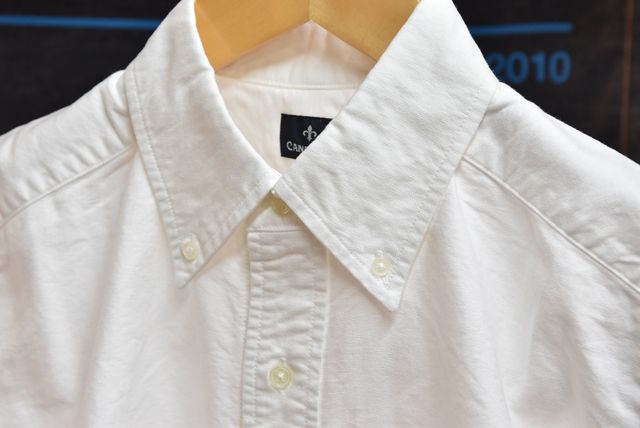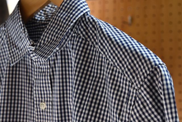 襟はアメリカのボタンダウンシャツのように、第一ボタンを外した時の衿の立ち上がりがきれいに見えるように工夫されています。