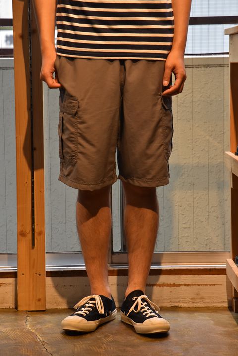 サラッとしたコットン100%のリップストップ素材は汗ばむ夏場も快適です。もちろん穿きこんでいった際の経年変化も楽しみ。適度にゆとりのあるシルエットはゆったりとしたTシャツ・シャツとのコーディネイトが好相性で、お値段もお手頃ですのでカーゴショーツをお探しの方は是非お試しくださいませ。