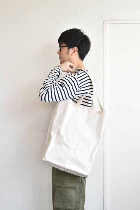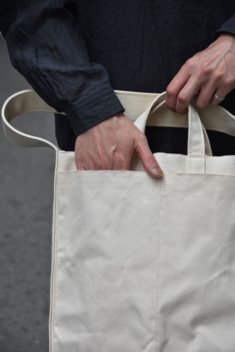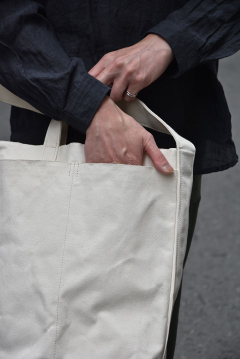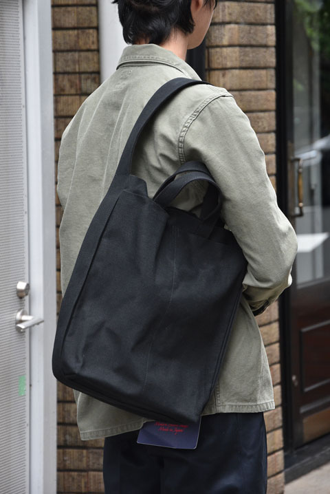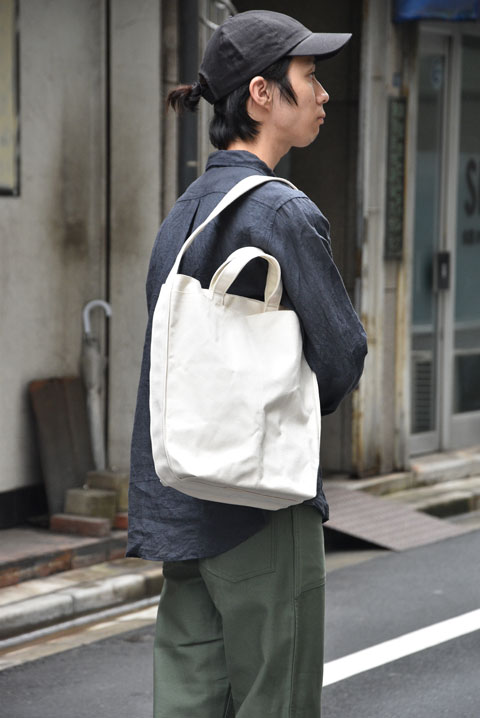 こちらのバッグの素材には岡山県倉敷にて、撚糸、糸染め、製織、など主たる工程を倉敷市内で行われた日本製、倉敷製の帆布を使用しています。