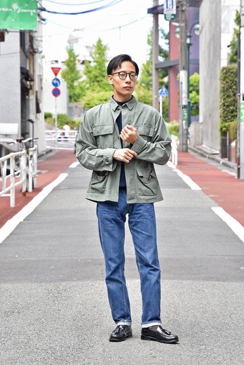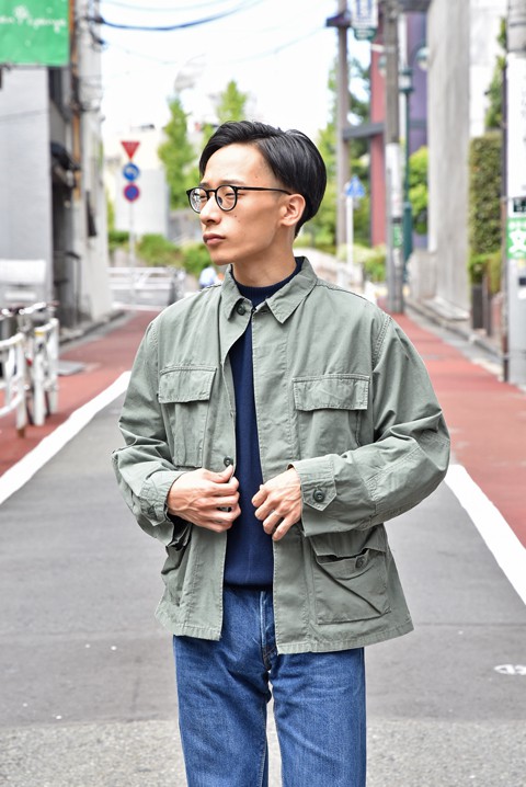 B.D.U.ジャケットとデニムの土臭さをニットで中和した大人カジュアルです。