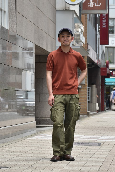 ブラウンのスキッパーポロをお買い求めくださったお客様は、ちょうど上の画像のようなコーデを。