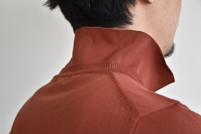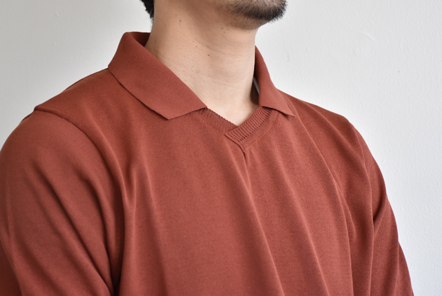 何より、ニットポロについて回る襟先の反り返りや型崩れがありません。