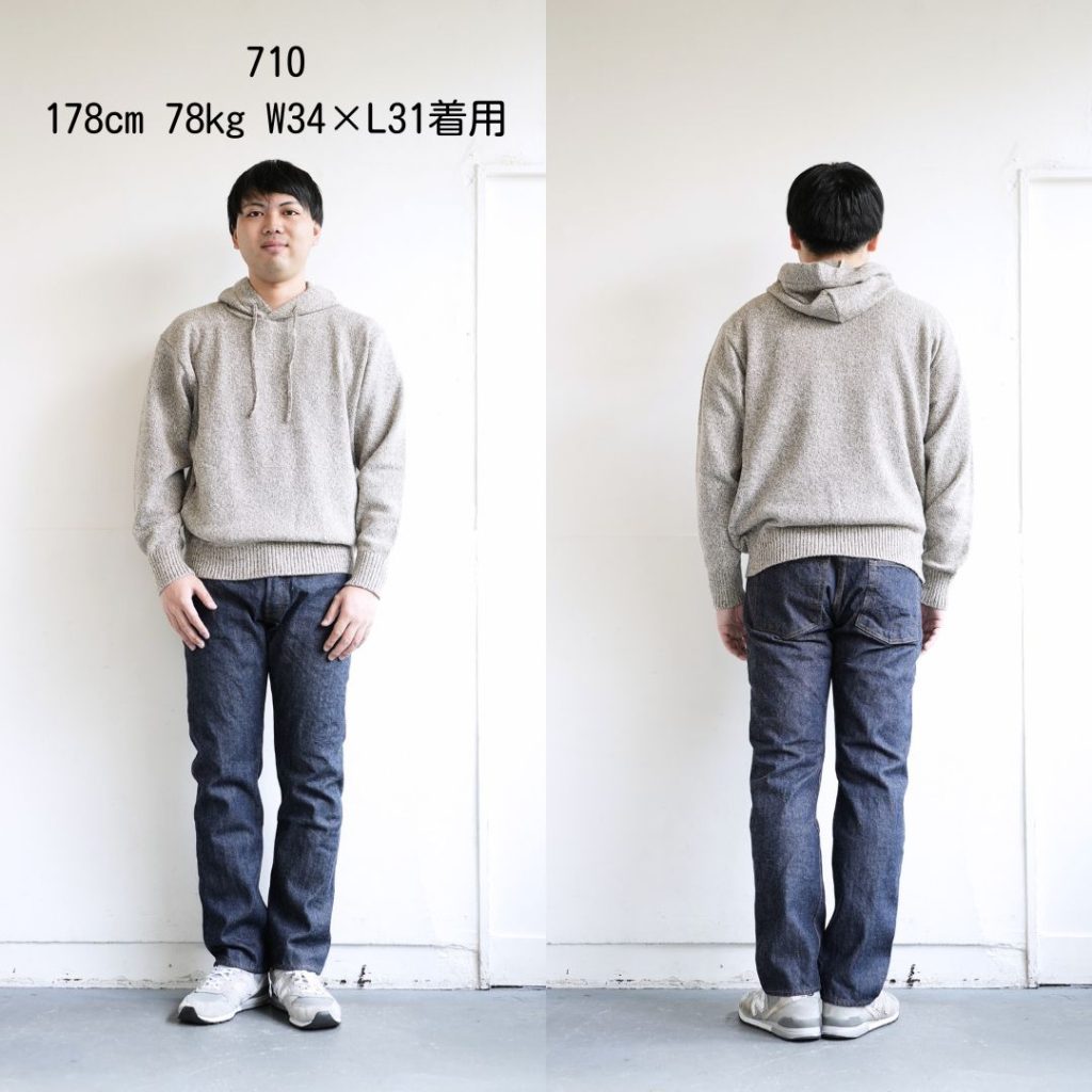 ブランド唯一のジップフライモデル。710に比べ股上が浅く、膝から裾にかけてテーパードがかかっています。