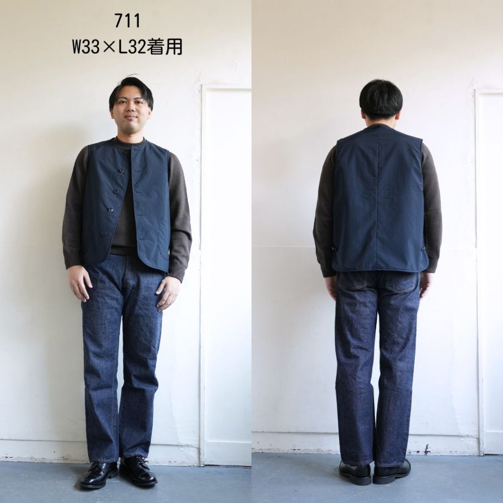 杉本のMY FIRST RESOLUTEである711。私は足が太めで710だと少し窮屈さを感じるので、楽に穿ける711が個人的には一番好みです。全体的にゆとりがありながら、股上は浅めで腰回りはスッキリ。太くて緩いわけではない、なかなか他にはないデザインかと。