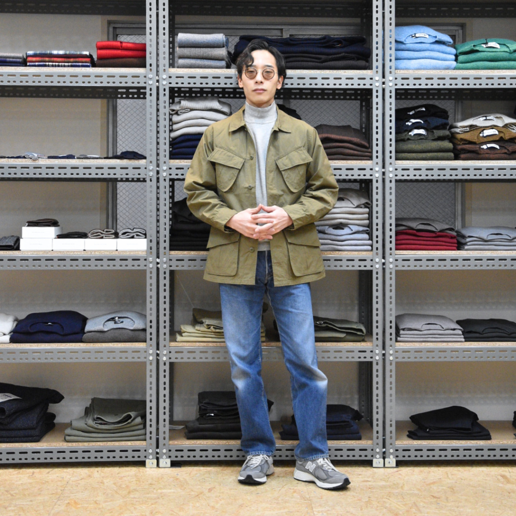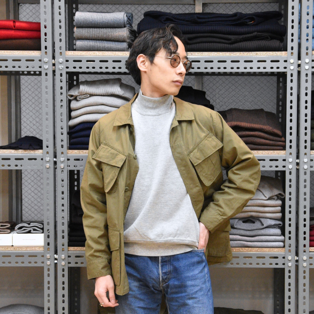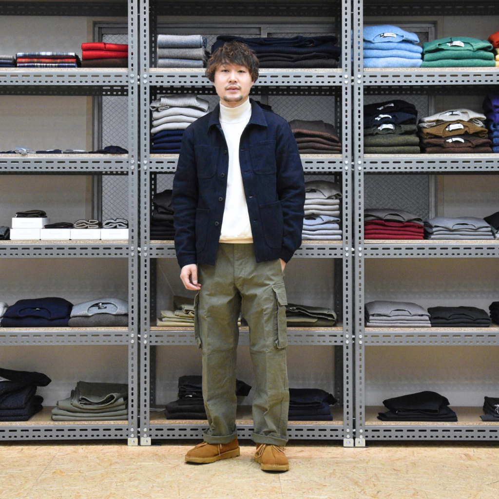 アメカジの王道ですが、モックネックが全体の印象を程良く引き締めてくれています。