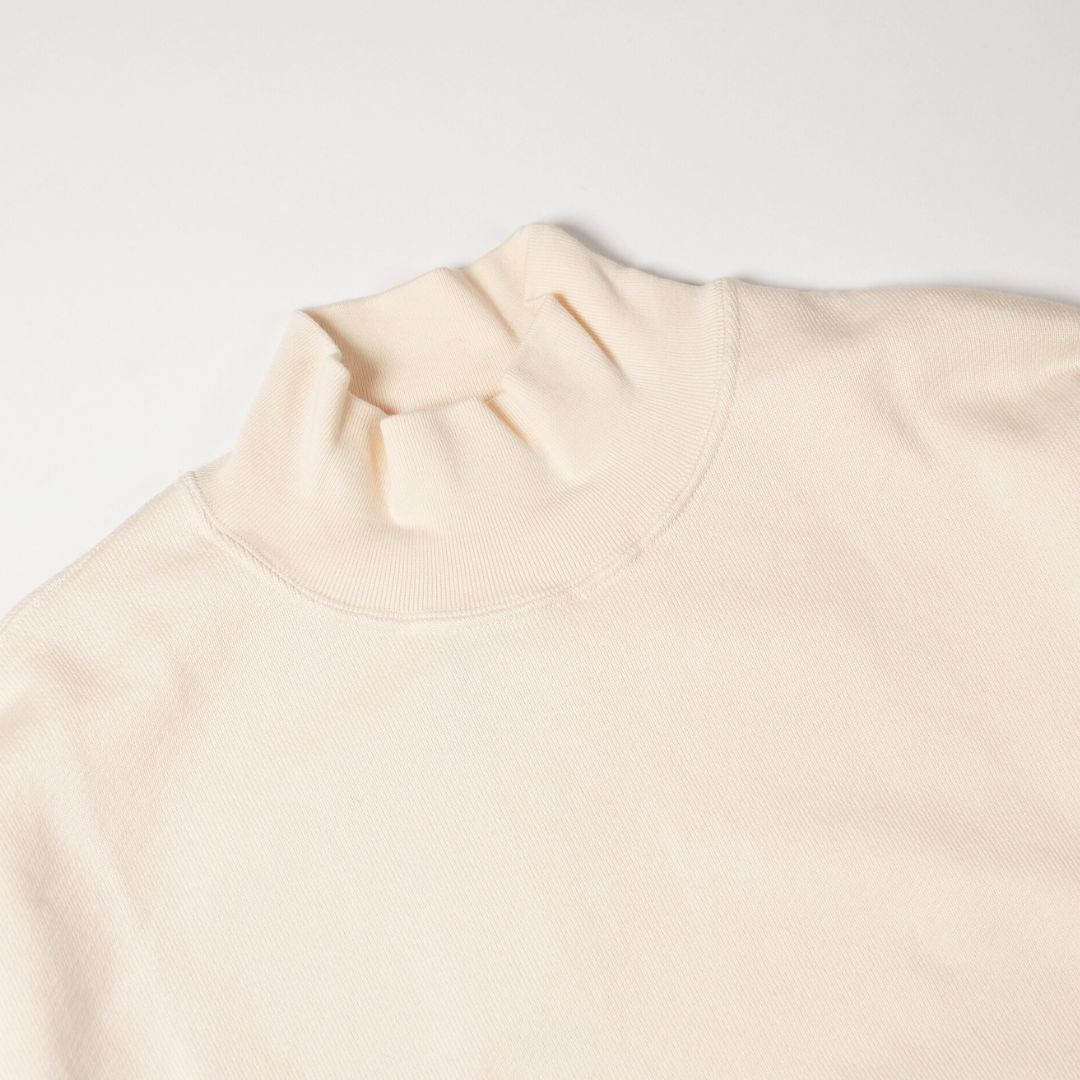 と見せかけて、ないわけではないモックネックのスウェット。