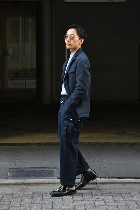 『テーラー仕立てが売りのドレスカーゴを、あえてサイズアップした上、センタープレスも潰して穿いちゃう。この背徳感が堪らない。なんて冗談は程々に。