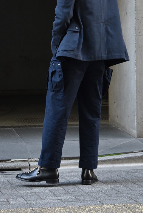 縫製がドレスのそれなので、カーゴながらに土臭さがないのが魅力だと思います。モノホンのカーゴとはシルエットの出方が違います。サイズアップした上にプレスを潰していてもです。どこか品良くまとまります。
