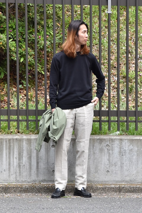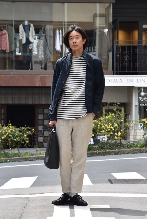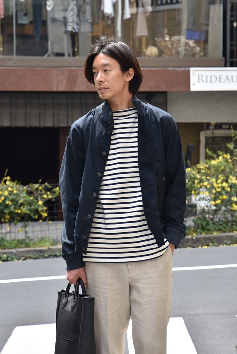 アウターには同じくZABOU別注のブルゾンを。今年はこんなリネンMIXも面白い。