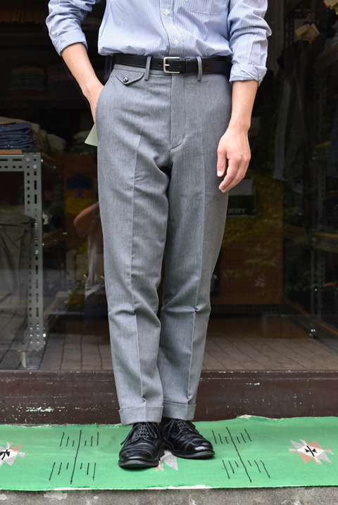 未処理のフラシ(股下約99cm)で仕上げましたので、脚の長さに関係なく、お好きな仕様タタキ・ダブルでお直し可能です。