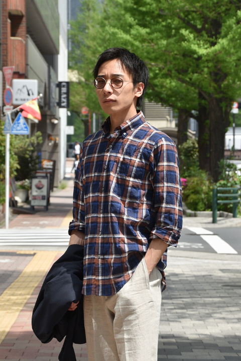 マドラスチェックやシアサッカーなど夏素材のシャツが手持ちにあると心強い。